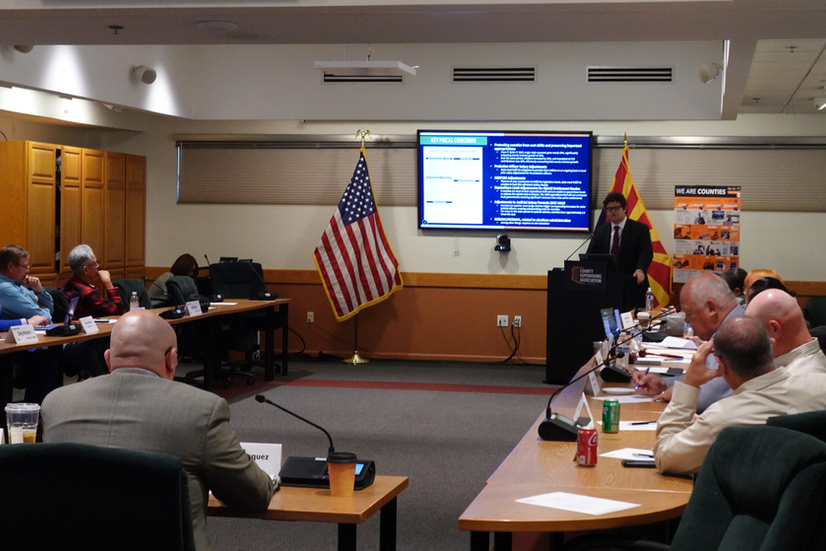 The meeting continued with a staff legislative report, additional discussion on public safety member trends through FY 2025, and a federal update. Staff also provided an overview of NACo’s National County Government Month in April 2026 and the “We Are Counties” campaign, including efforts to highlight Arizona’s counties, supported by a proclamation issued by the Governor. The meeting concluded with reports from the County Managers Association and County Caucus updates.