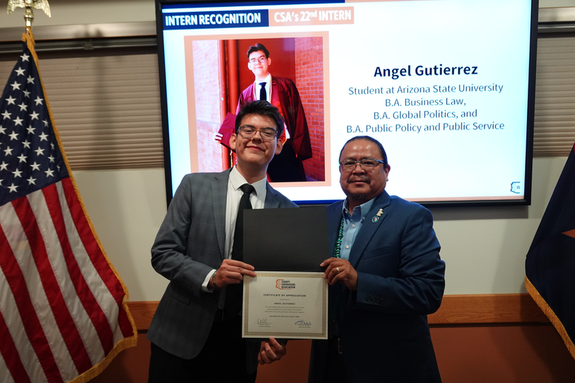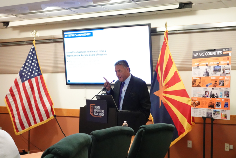 On Thursday, February 19th, county supervisors met in Phoenix for the April County Supervisors Association Board of Directors meeting. The agenda included elections for the National Association of Counties Board of Directors representative as well as two NACo Western Interstate Region Board of Directors representatives. The Board elected Santa Cruz County Supervisor Rudy Molera to the NACo Board of Directors Position and elected Gila County Supervisor Woody Cline and Coconino County Supervisor Patrice Horstman to the NACo Western Interstate Region Board of Directors. Members also officially endorsed Steve Peru - a nominee to the Arizona Board of Regents and former Coconino County Manager - and commended him for his service to counties and the state. Association leadership also recognized Angel Gutierrez, CSA's 22nd intern, highlighting his contributions to the Associations legislative, research, and communication priorities this legislative session.